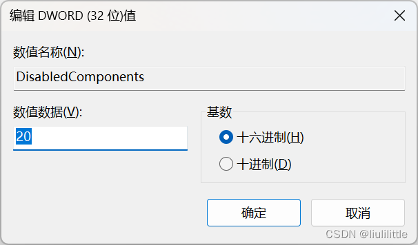 Hex Value Functionality 0x00 Enable IPv6 0x01 Disable IPv4 0x20 Prioritize IPv4 (recommended) 0xFFFFFFFF Fully disable IPv6 -