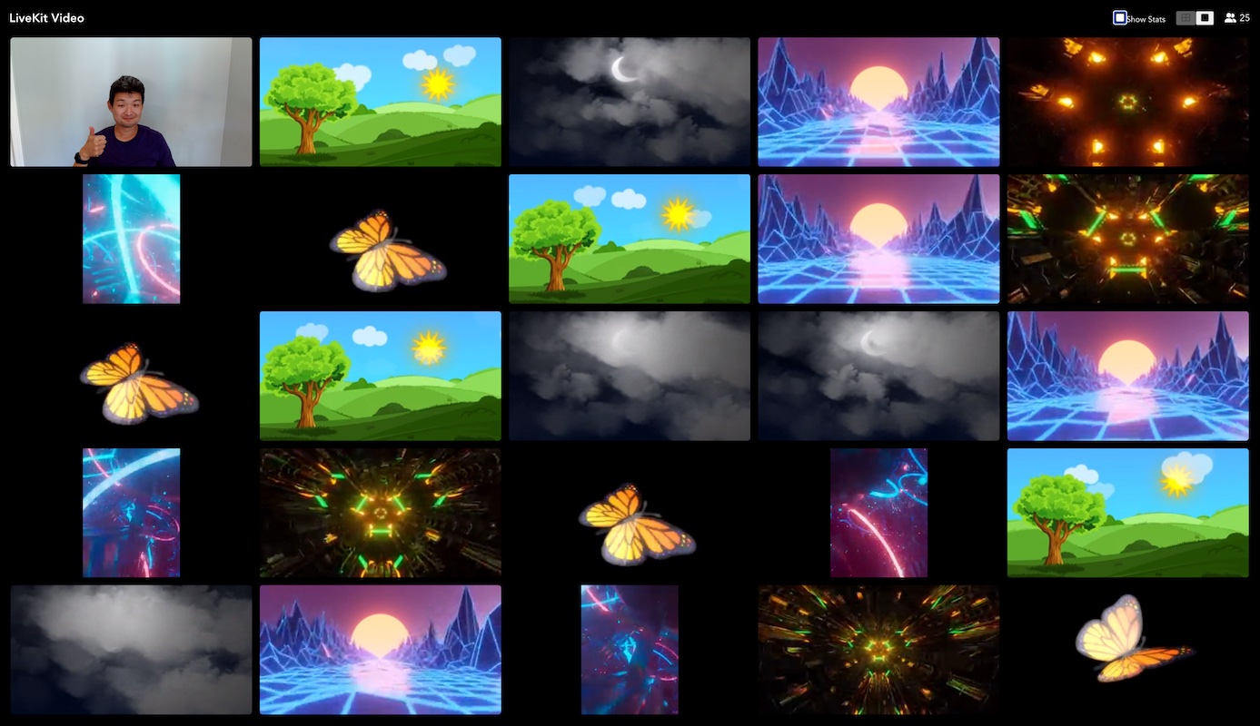 --video-publishers 3This command will launch a browser pointed at http://localhost:3000, while simulating 3 publishers publishing to your livekit instance.